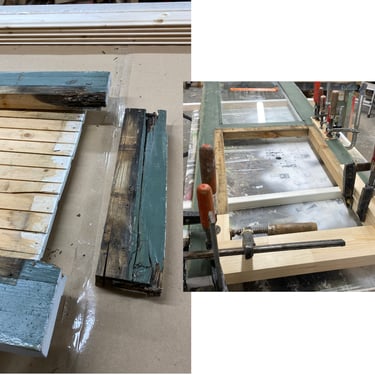Näitä erilaisia laho- ja rikkoutumiskorjauksia tulee tehtyä melko paljon. Haaste on se, että ei ikinä muista ottaa kuvia ennen ja jälkeen tilanteista! Tässä muutamia harvoja. Vanhojen Jugend-ovien lahokorjauksia ja yksi modernin ikkunanpokan korjaus. Teen paljon myös murto ja rikkoutumiskorjauksia, joten kannattaa kysyä!